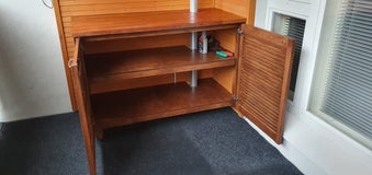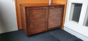 Näytekuvassa näet hiljattain valmistuneen kaapin, joka on suunniteltu asiakkaan toiveiden mukaisesti. Tämä kaappi toimii sekä sähkögrillin alustana että tarvikkeiden säilytyspaikkana parvekkeella. Toteutamme kaikki kaapiprojektit tarkasti ja huolellisesti, jotta lopputulos vastaa täydellisesti asiakkaan odotuksia.